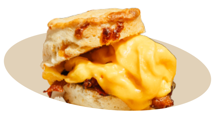 Scrambled eggs and cheddar cheese on a cheddar biscuit. Add bacon, sausage, or pork roll for $2 extra.